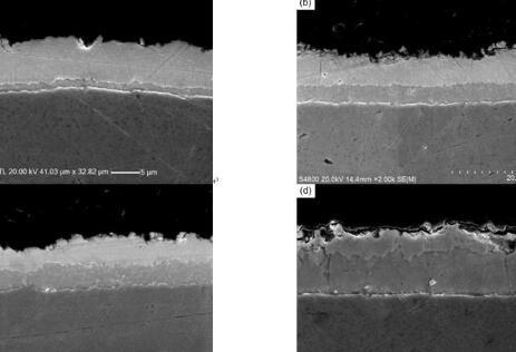 鍍層厚度是指從表面至滲層界面分界線的垂直距離。對于只形成化合物層且界面平直的情況,層深的測定十分簡單。對于有擴散層的滲層,層厚應包括化合物層和擴散層。鍍層厚度的測定方法有庫侖法,金相法,渦流法和X射線熒光法。