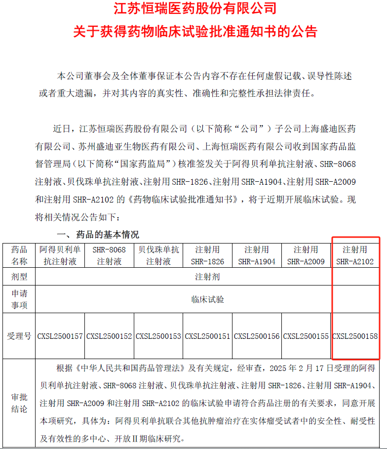 ADC雙星閃耀!天勤生物賦能恒瑞醫(yī)藥兩大抗腫瘤創(chuàng)新藥獲批臨床