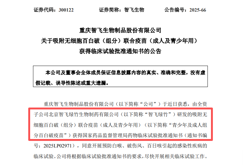 在我國(guó),兒童百白破疫苗接種已廣泛普及,但針對(duì)青少年及成人的加強(qiáng)免疫產(chǎn)品長(zhǎng)期缺位,形成了顯著的“免疫斷層”。這一空白不僅導(dǎo)致百日咳在青少年及成年人群中的感染日益普遍,也為公共衛(wèi)生帶來了潛在風(fēng)險(xiǎn)。此次進(jìn)入臨床階段的組分百白破疫苗,采用單獨(dú)純化的百日咳有效組分,聯(lián)合白喉、破傷風(fēng)類毒素,以更精準(zhǔn)的組分設(shè)計(jì)與更穩(wěn)定的質(zhì)量體系,旨在為7歲及以上健康人群提供加強(qiáng)免疫的新選擇。截至目前,國(guó)內(nèi)尚無同類產(chǎn)品上市,該疫苗有望率先打破市場(chǎng)空白,重塑全生命周期百白破免疫防護(hù)格局。