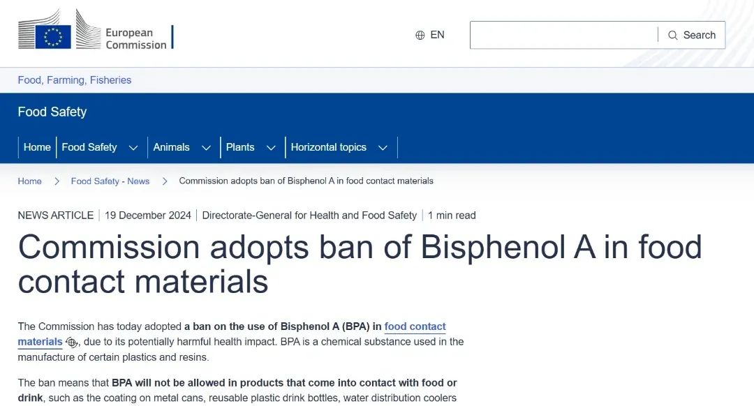 法規原文:https://food.ec.europa.eu/food-safety-news-0/commission-adopts-ban-bisphenol-food-contact-materials-2024-12-19_en