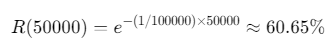 這意味著,該服務(wù)器運(yùn)行5萬小時后,仍有約60%的概率未發(fā)生故障。