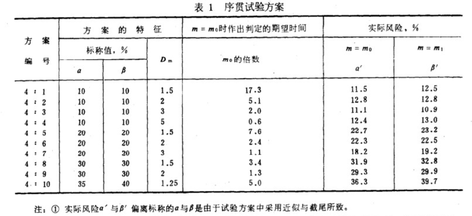 mo=規定可接受的平均無故障時間;a=生產方風險;B=使用方風險;